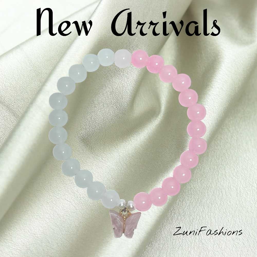 Matching Butterfly Charm Bracelets, Pink & White Duo Beaded Set for Best Friends