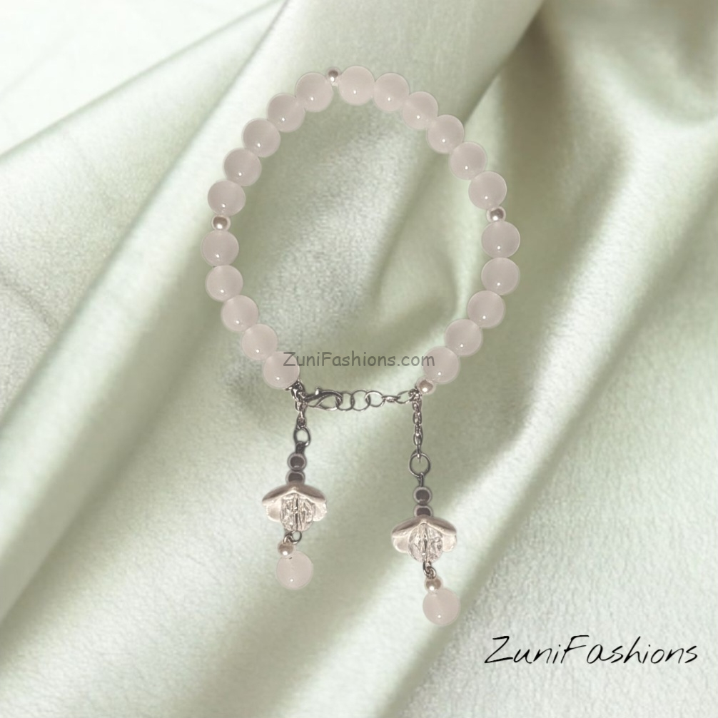 Discover refined simplicity and graceful design with this beautifully handcrafted beaded bracelet from ZuniFashions. Designed to embody elegance and gentle sophistication, it features smooth, polished beads arranged in a balanced and harmonious pattern. At the center, two delicate floral-inspired dangling charms add a touch of movement and artistic detail, creating a feminine and timeless look suitable for any occasion.