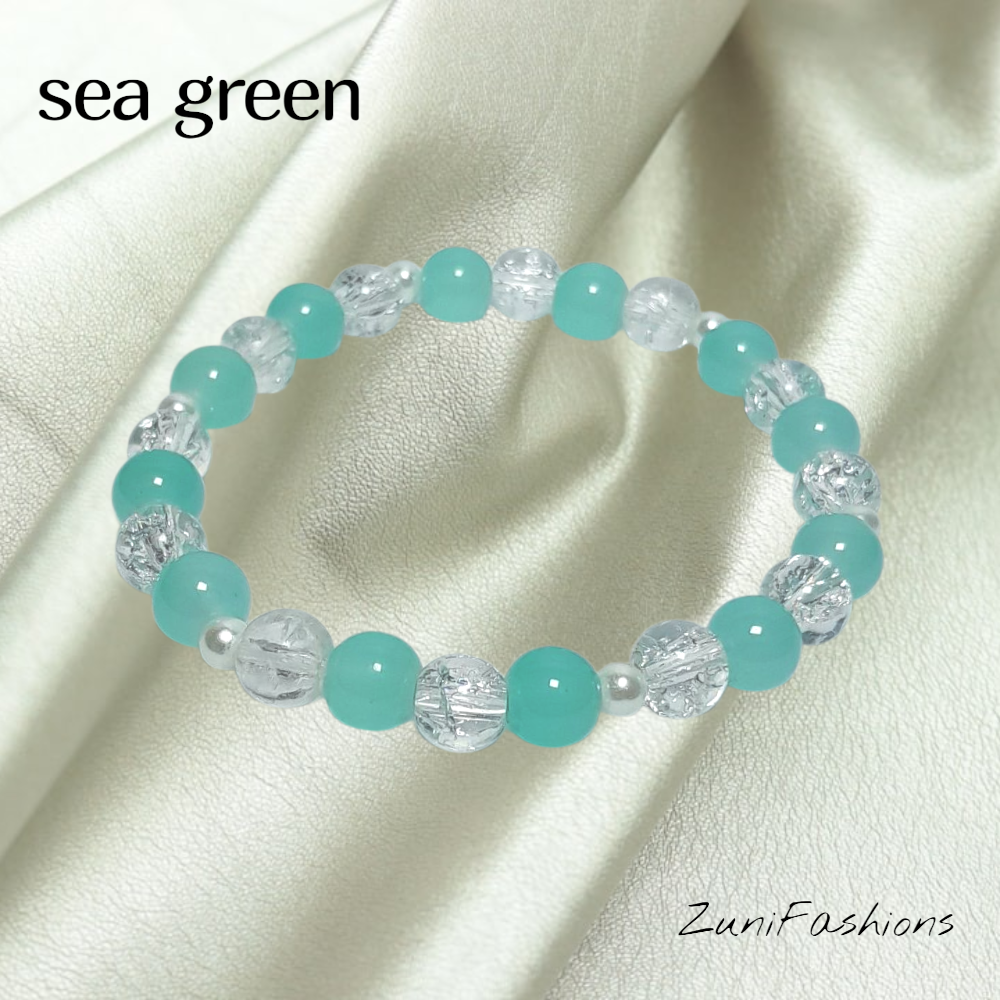 Elevate your accessory game with our Ocean Breeze Crystal Beaded Bracelets a refreshing blend of cool tones and artisan charm. Handcrafted with a harmonious mix of sky blue, soft sea green, and clear crackle glass beads, each bracelet exudes tranquility and sophistication. The stretchable design ensures a comfortable fit for all wrist sizes, while the premium quality beads offer durability and a brilliant shine.